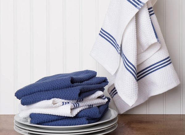 Dish towels are used primarily for drying dishes and utensils after washing. They are typically made from absorbent materials like cotton or linen and are often available in various patterns and colors to complement kitchen decor.